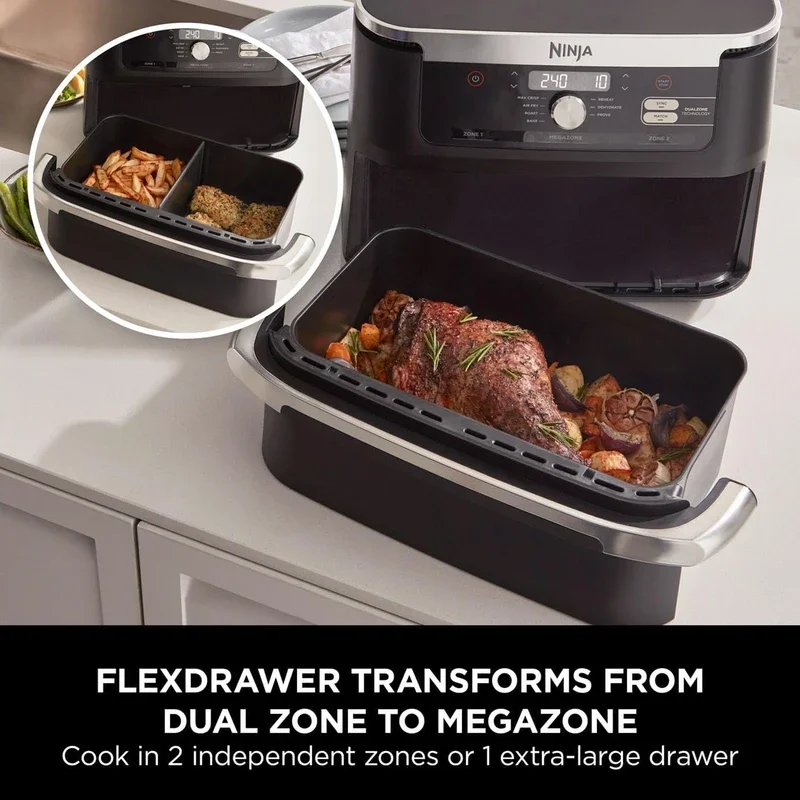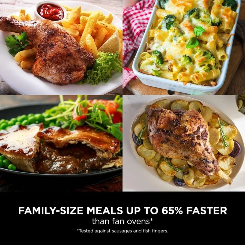 سرخ کن نینجا مدل AF500 یک محصول چند کاره و پر قدرت با بازدهی بالا است که میتواند تجربه پخت غذاهای لذیذ را در کمترین زمان ممکن به شما بدهد. این سرخ کن پیشرفته از برند نینجا با توان ۲۴۷۰ واتی امکان سرخ کردن مواد غذایی مختلف را بدون استفاده از روغن یا با روغن کم برای شما فراهم میسازد به طوری که با داشتن این سرخ کن مصرف روغن شما تا ۷۵ درصد کاهش میابد.لازم به ذکر است که در این سرخ کن عمل پخت و پز تا ۶۵ درصد سریع تر صورت میگیرد و به شما کمک میکند انواع غذا ها از جمله سیب زمینی، مرغ، گوشت، ماهی، میگو، همبرگر، دسر، اسنک و … را به راحتی تهیه کنید.