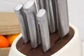 ست بلوک ۶ عددی چاقو، با طراحی زیبا از متریال استیل کربنی با پوشش پولیش و چوب اقاقیا