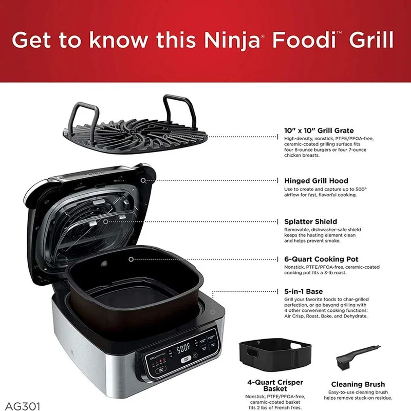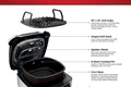دارای برنامه های ( سرخ کن ، گریل ، میوه خشک کن ، کباب و پخت کیک و ...) برنامه گریل قابل تنظیم ۴ حالت پخت از کم ، متوسط ، زیاد و حداکثر توان قابلیت تنظیم دما و زمان به صورت دستی و دلخواه تمام ظروف پخت و پز نچسب با روکش سرامیک و عاری از PTFE و PFOA ابعاد صفحه مخصوص گریل ۲۵.۴ در ۲۵.۴ سانتی متر ظرفیت ظرف مخصوص پخت ۶ لیتر ظرفیت ظرف مخصوص سرخ کردن ۴ لیتر گردش هوا با دمای حداکثر ۲۶۰ درجه سانتی گراد در محفظه دارای تکنولوژی گریل smoke free بدون دود