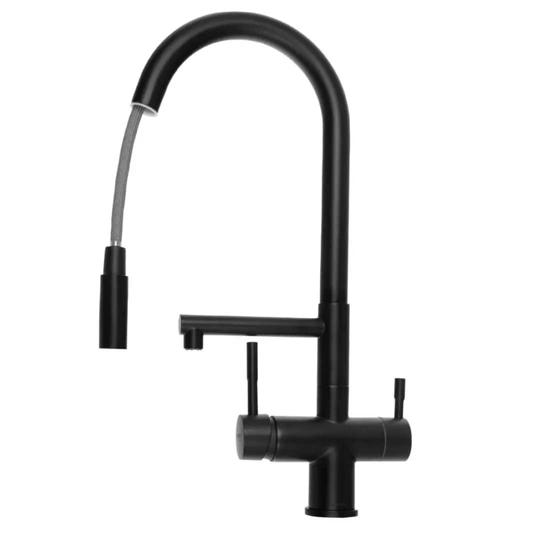 شیر سینک دو منظوره شاوری دیکالان با متریال برنجی و ضمانت یکی از شیر الات خوب تولید شده میباشد . رنگ مشکی شیر آشپزخانه از نوع رنگ کوره ای مات و مقاوم تولید شده است . شیر آشپزخانه از نوع تصفیه دار که دارای دو شیر مجزا از ( شیر شاوری و شیر تصفیه دار ) خروجی آب تصفیه شده و آب شستشوی جدا از هم ساخته شده است . شیر آشپزخانه شاوری ( شلنگ دار ) میباشد . طراحی شیر سینک دو منظوره از شرکت گروهه آلمان کپی برداری شده و شیر سینک شاوری تصفیه دار بسیار جدید , شیک و با ارتفاع مناسب میباشد.